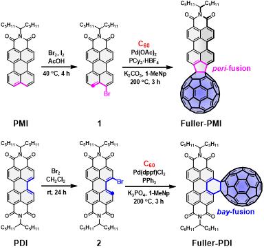 圖1. 富勒-萊啉(Fuller-PMI和Fuller-PDI)的合成路線