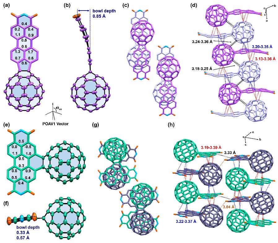 圖4. Fuller-PMI (a), (b), (c) and (d)和Fuller-PDI (e), (f), (g) and (h)單晶結(jié)構(gòu)圖